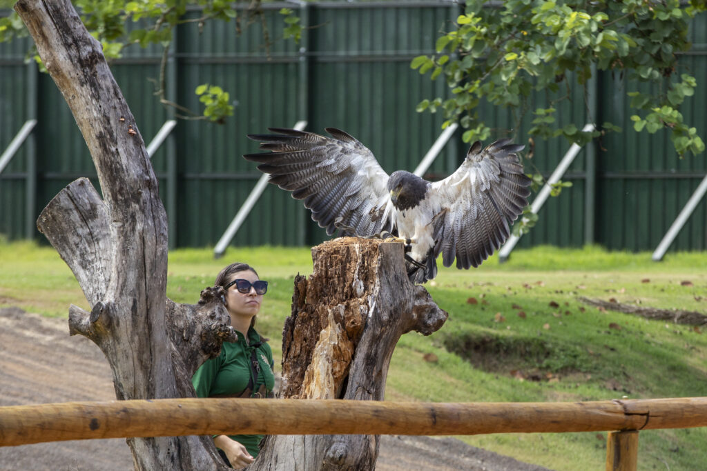 Antes ou depois do passeio pelo lago ou da interação com os coelhos, é possível visitar a Floresta dos Primatas, único viveiro de imersão de macacos do Brasil e assistir ao voo das aves de rapina, experiência única na América do Sul e arte reconhecida pela UNESCO como patrimônio cultural da humanidade.